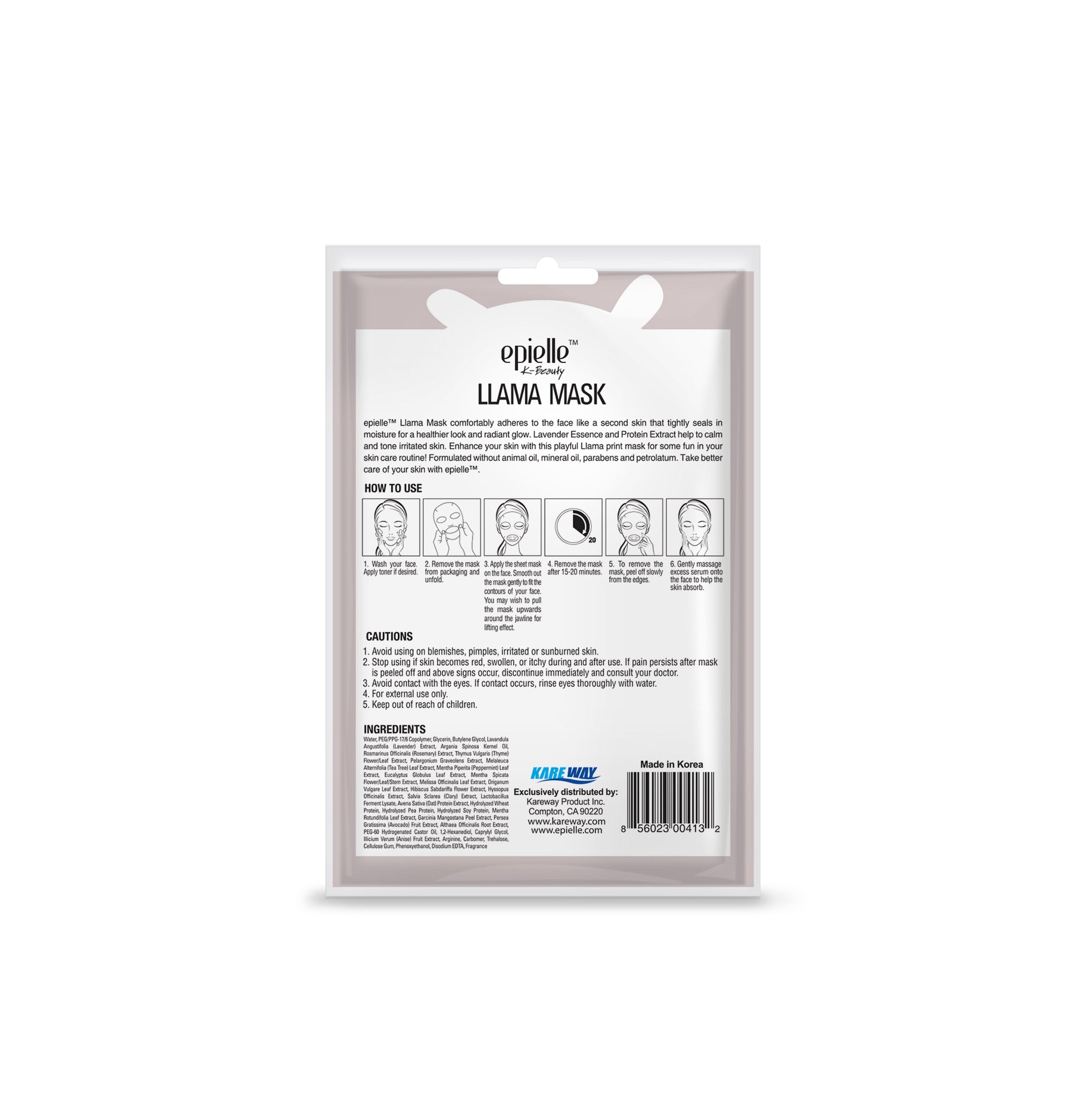 Indulge in the delightful epielle Llama Mask, designed to fit snugly like a second skin, sealing in moisture for a healthier, more radiant complexion. Enriched with collagen and fruit extracts, this mask boosts moisture and provides a lifting effect for a visibly youthful appearance.