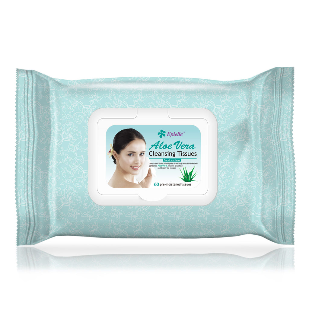 Experience the touch of epielle Aloe Vera Cleansing Tissues, meticulously designed with unique dirt-trapping fibers. These luxurious cloths delicately whisk away impurities, including stubborn waterproof mascara, leaving your skin feeling refreshed and rejuvenated. Embrace the convenience of these pre-moistened treasures for a pampering session that transcends the ordinary, revealing a radiant and luminous complexion.