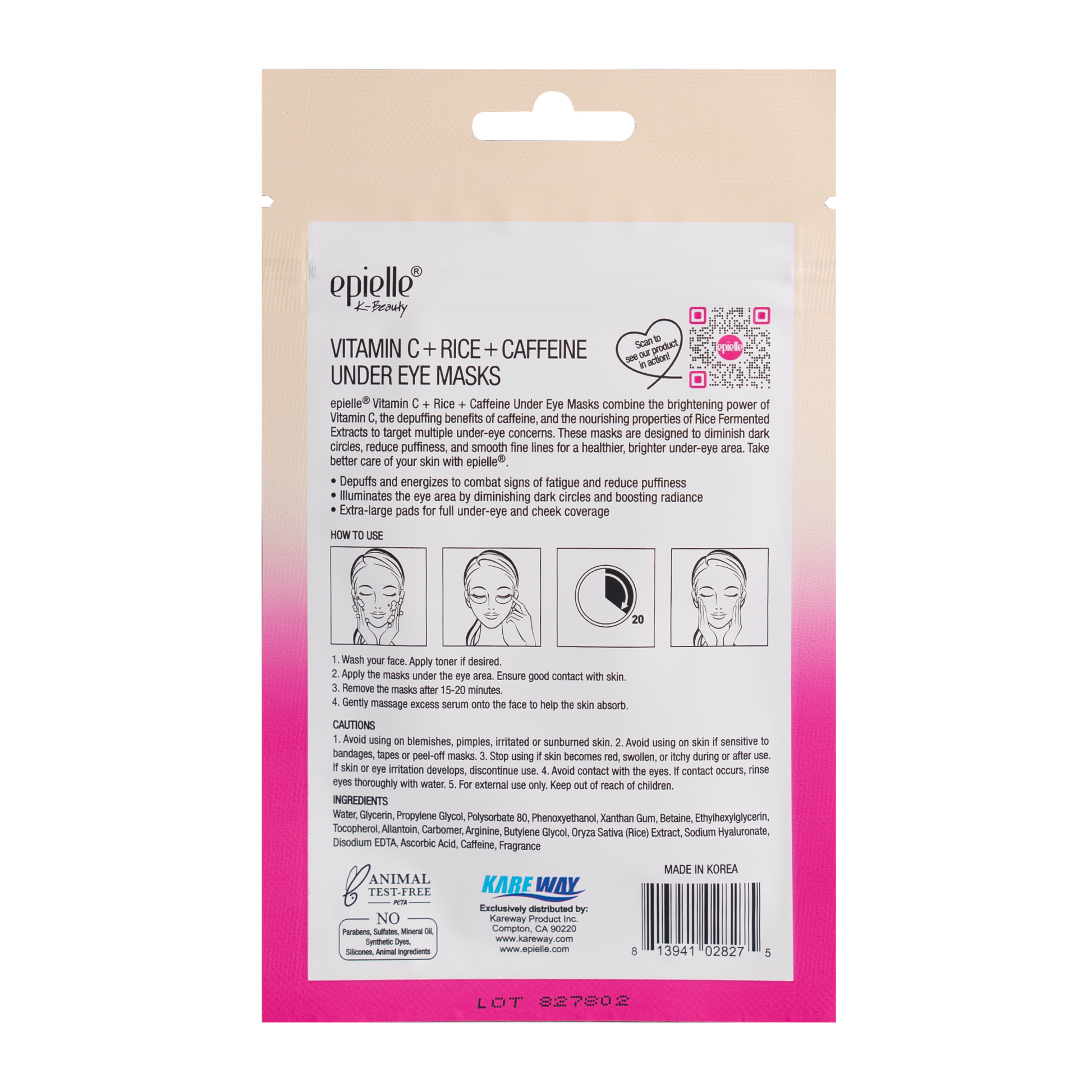 Epielle Under Eye Masks – Vitamin C, Rice & Caffeine (1 Pack, 10ct)