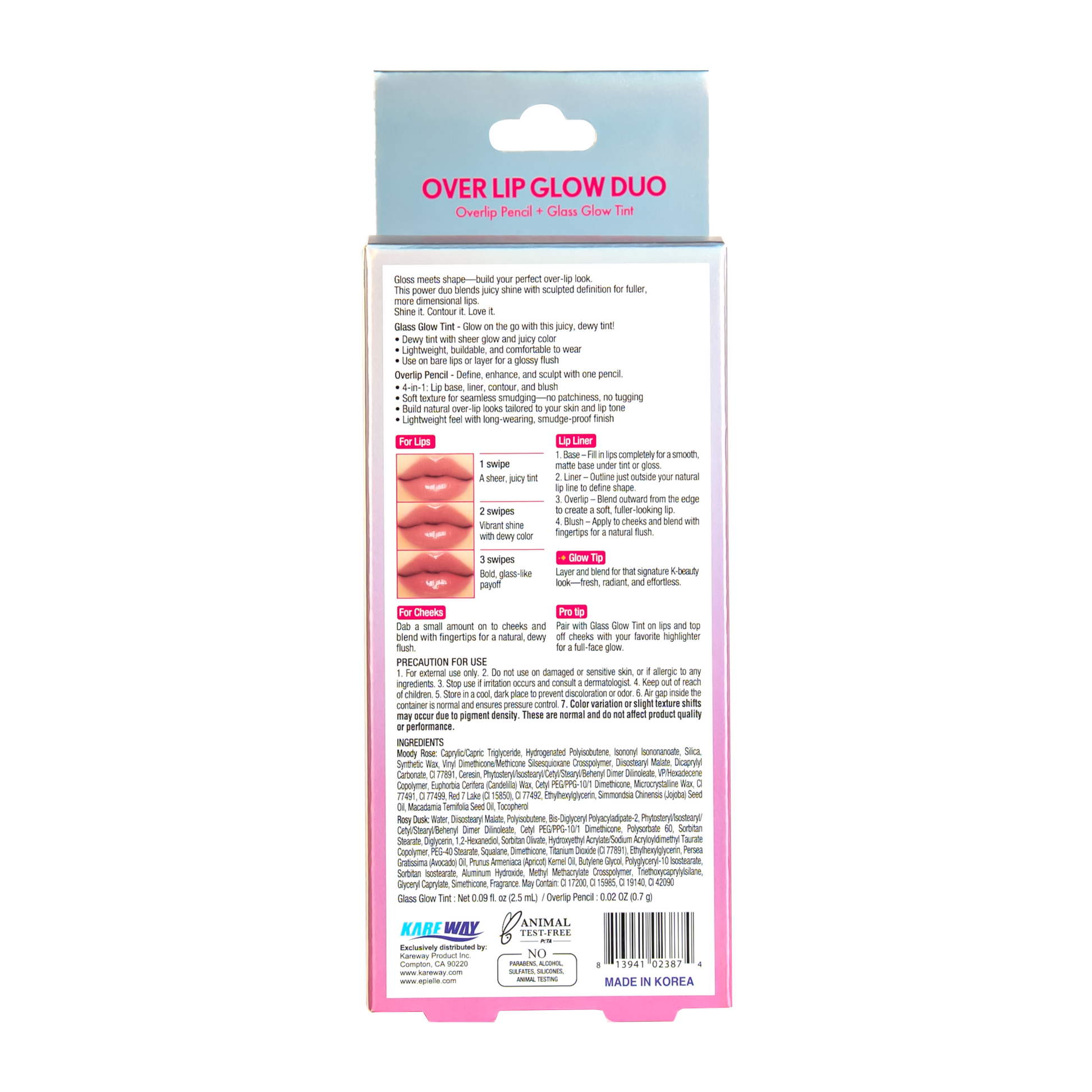 The epielle x herg Over Lip Glow Duo combines a soft-blurring Moody Rose Over Lip Pencil with a juicy Rosy Dusk Glass Glow Tint to create naturally fuller, rosy lips. The thicker K-beauty “over lip” pencil makes overlining easy and seamless, while the hydrating tint adds a glossy, long-lasting finish. A simple dual-lip duo designed for smooth definition, plump shine, and everyday wearable color.