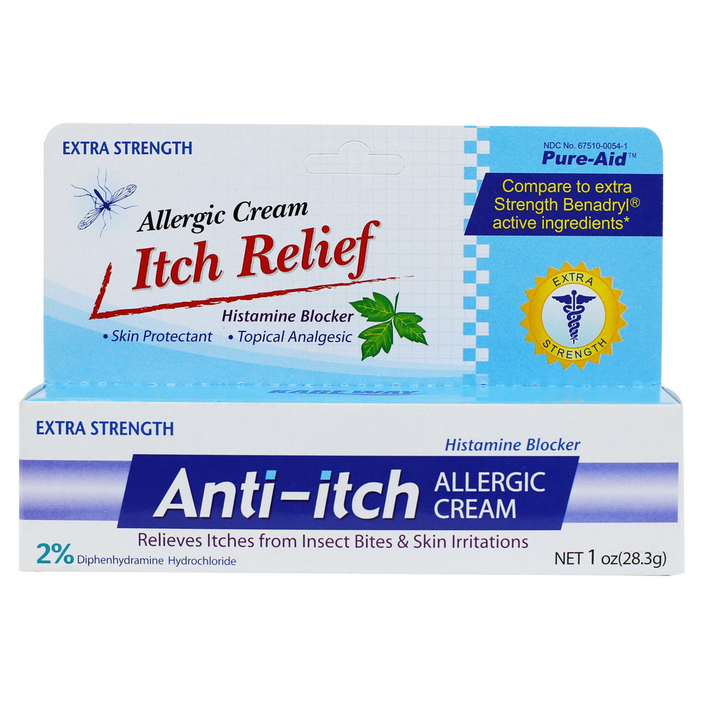 Introducing Pure-Aid Anti-Itch Allergic Cream, your go-to relief for itching and pain associated with various skin irritations. Specifically formulated, it provides temporary relief for insect bites, minor burns, sunburns, skin irritations, cuts, scrapes, and rashes caused by poison ivy, oak, and sumac. Additionally, it helps dry the oozing and weeping associated with these irritants.