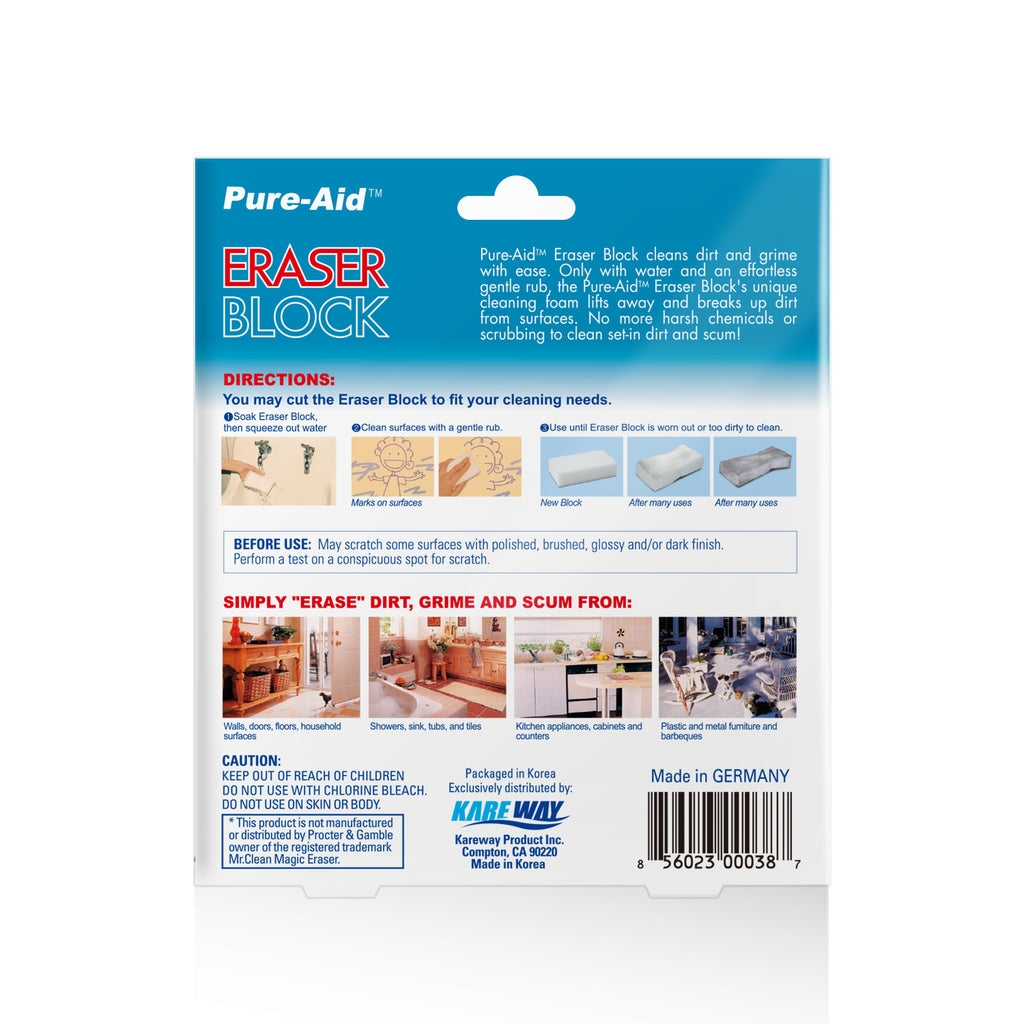 Tackle tough messes with ease using the Pure-Aid Eraser Block. These durable cleaning pads lift dirt, grime, and stains from surfaces with just water—no harsh chemicals needed. Each block is designed for single-use convenience, making deep cleaning effortless and mess-free.