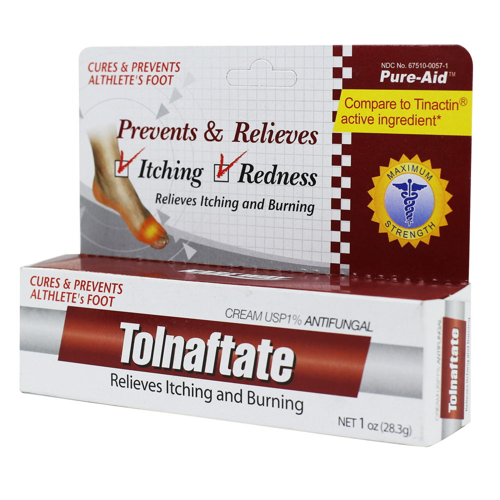 Pure-Aid Tolnaftate Antifungal relieves itching and burning foot. Cures & Prevents athlete's foot.