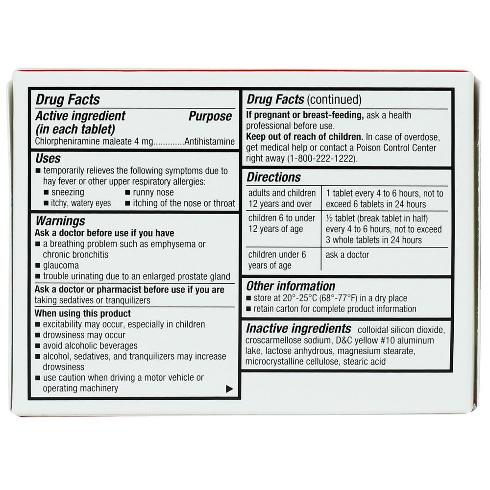 - Compare to active ingredient of Chlor-Trimeton allergy tablets